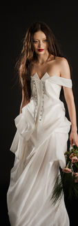 — a deeply personal space filled with memories, dreams, and the essence of who she is. It is a world she has built over time, shaped by her experiences, emotions, and aspirations. Now, as she steps into marriage, this world does not disappear; instead, it opens, expanding to welcome another soul into its embrace. Color defines this collection, just as it defines every life. Each shade tells a story, representing the depth, personality, and uniqueness of the bride. Soft, delicate tones speak of tenderness and quiet moments, while rich, bold hues reflect passion, strength, resilience. Unexpected color combinations break away from tradition, embracing the beauty of individuality within unity. The blending of colors within each gown not only reflects the bride’s rich inner soul but also symbolizes the beauty of intertwining two worlds — distinct yet deeply connected. Every detail honors the richness that each person brings to a marriage, celebrating love in its most exciting form: different worlds coming together.